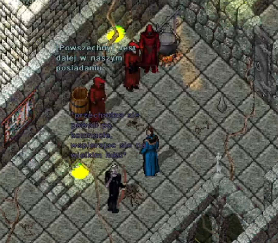 Gdy tylko oczyska bladej postaci spoczęły na licach mieszkańców Nelderim, otworzyły się jej usta, a z nich popłynęły słowa „dalej, proszę, wejdźcie”. Śmiałkowie, lekko zadziwieni, wjechali do komnat, a ich oczy przyciągane były przez zielone zwłoki Elfa, który leżał na środku.
